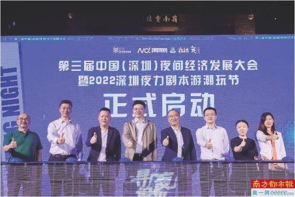 活动现场,深圳市商务局党组成员袁晓方;南山区政府党组成员、副区长夏雷;南方都市报社党委副书记、总经理,深圳大件事传媒董事长陈文定;深圳市商务局消费处处长刘勉;南山区南头街道党工委书记黄健;深圳市质量协会执行会长、深圳市品质消费研究院院长李榕;南方都市报社编委、湾财社CEO王莹;综合开发研究院(中国·深圳)企业与市场研究中心副主任阮丽熔共同参与启动仪式,宣布第三届中国(深圳)夜间经济发展大会暨“寻夜追光”2022深圳夜力剧本游潮玩节正式开启。