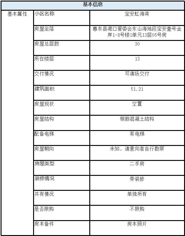 该房源位于惠州宝安壹号金岸,起拍价23669元。该房源为一居室,建面51平,为30层高楼住宅。房源位于位于惠州市双月湾滨海旅游景区,是惠州标准的特别海景房,小区建有私家海洋馆,占地约500-600㎡。此类房源…