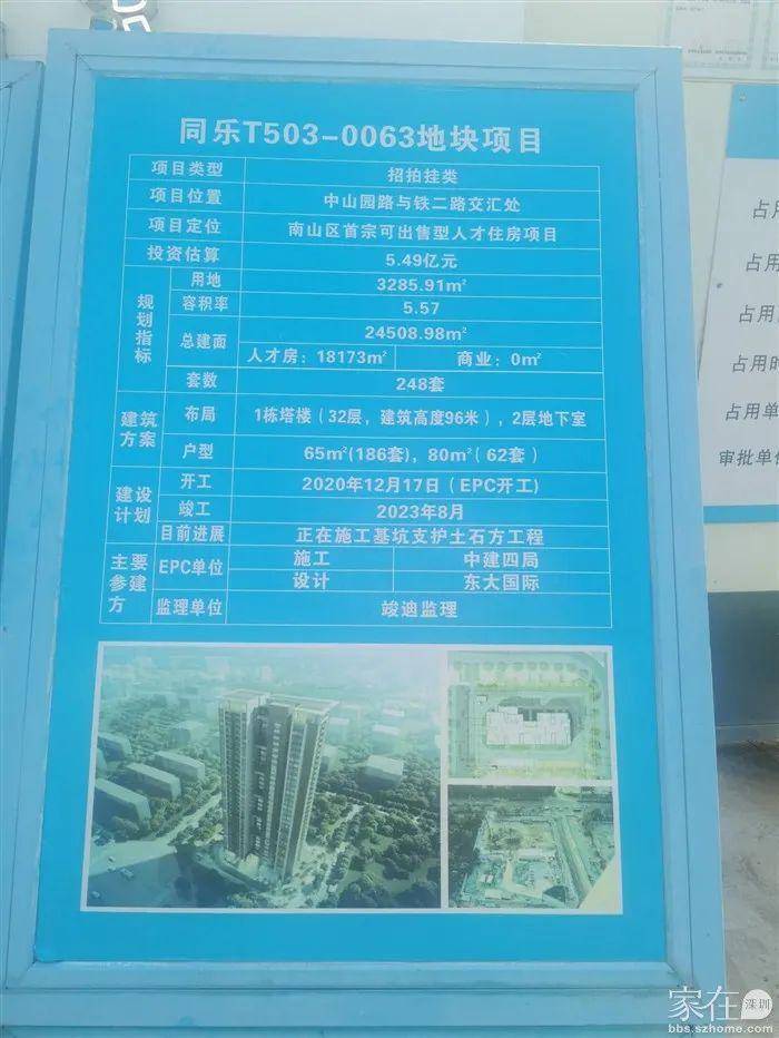 项目旁边还有一个拍卖地,T503-0063同乐韾苑人才房,项目占地3285平方米,总建筑面积约2.45万平,其中人才房面积约1.8万平,1栋塔楼,共248套,186套65㎡户型,62套80㎡户型。