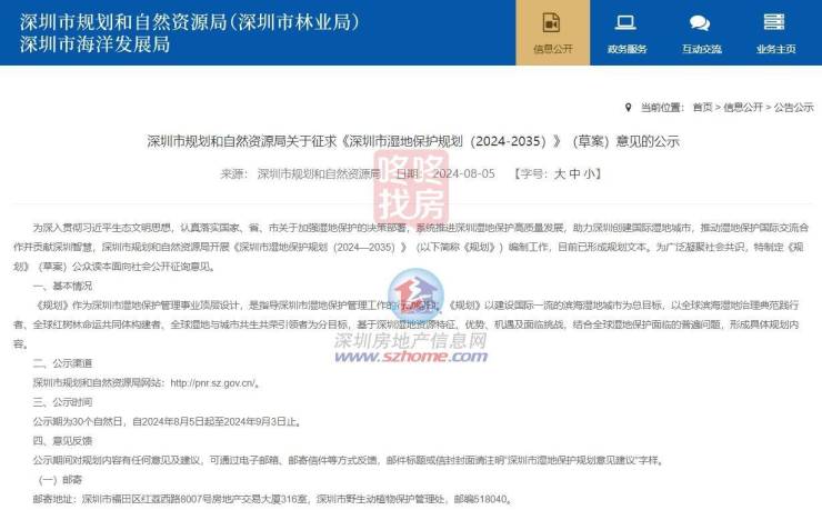 近日,深圳市规划和自然资源局发布《深圳市湿地保护规划(2024—2035)》(草案)并面向社会公开征询意见。