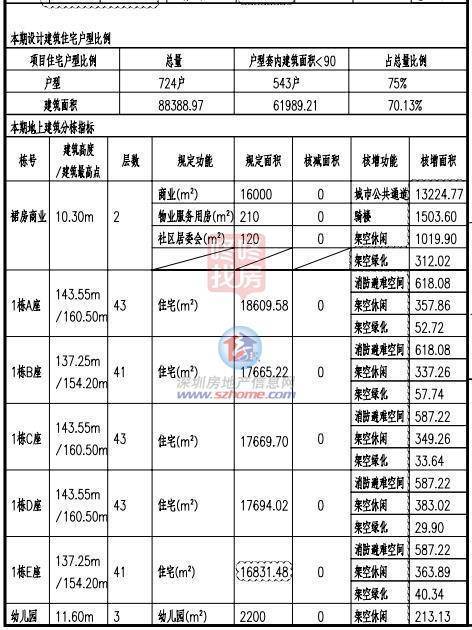总户数724户,其中90平以下的户型有543户;