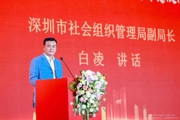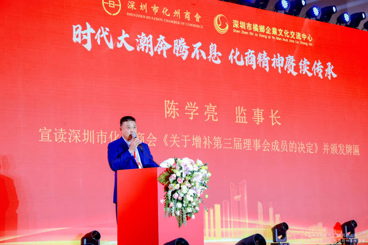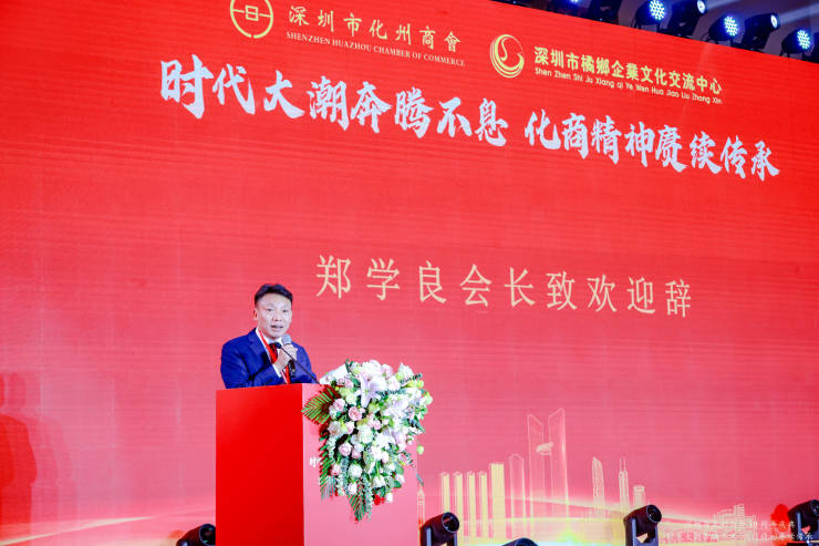 深圳市化州商会会长郑学良先生在大会上致辞,他表示深圳市化州商会成立至今,已有十年,回望过去十年,奋斗充满艰辛,成绩可喜可贺。 十年来,在深圳、化州两地党委、政府的正确领导下,特别是在深圳市民政局,化州市委统战部、工商联(总商会)的具体指导下,在全体顾问、全体会员及广大乡亲的大力支持下,商会始终秉承勤劳拼搏的化商精神,发扬敢闯敢试、敢为人先、埋头苦干的特区精神,通过整合资源、上下联动、左右互动、商务座谈、联谊学习等,凝心聚力为会员企业服务,助力会员企业发展。十年来,商会注重服务平台建设,推进会员企业在资源互联中,走在前列;成立“一部一队三专委”平台,党建引领,化青、妇工、法工三专委协同发展,成为对会员企业服务的重要平台、对外宣传的重要窗口。时序轮替,不移桑梓之情,十年来,商会充分发挥桥梁纽带作用,配合家乡政府做好招商引资工作,响应“反哺”号召,投资建设家乡;倡导会员企业热心公益事业,如奖教奖学、乡村振兴、抗震救灾、抗疫防疫等方面积极作为,为家乡的经济社会发展作出了贡献。