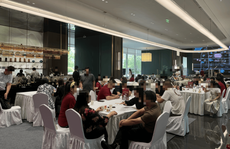 这个购房团由欧成效发起和组织,成员们大多是他网络直播间的观众。8月10日~11日,所有人从各地乘车赶到长沙,集中入住酒店,再乘坐大巴考察楼盘。