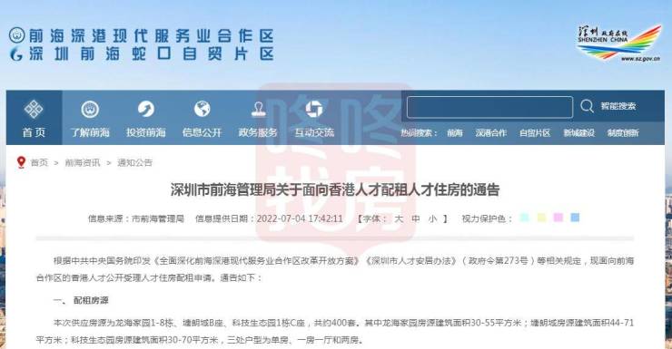 近日,前海管理局发布《关于面向香港人才配租人才住房的通告》,启动“2022年前海人才住房面向香港人才配租”工作。