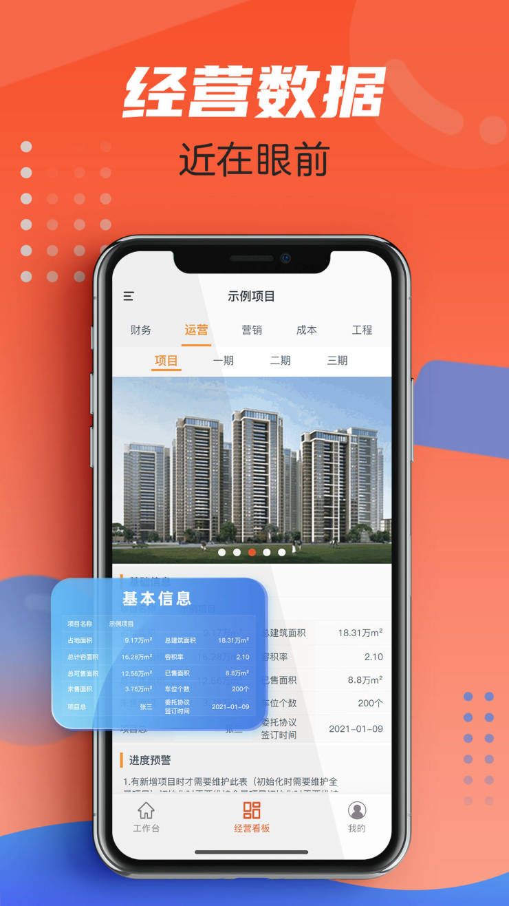 依托于金地集团三十余年的经验积累与金地管理在代建行业的信息化实践,金地管理委托方驾驶舱用开放的姿态,将进度、营销、成本、工程、设计、费用等200多个核心经营指标,以客观的形式呈现,全面实现经营数据可视化,帮助委托方实时、全方位了解项目情况,为信任关系的建立打下了良好的基础。