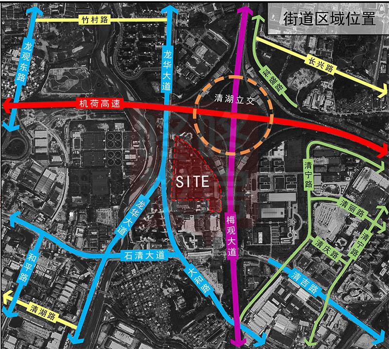 项目位于龙华区龙华街道龙华大道与大和路交汇处东侧,拆除用地面积107726.4㎡,开发建设用地面积61619.2㎡。