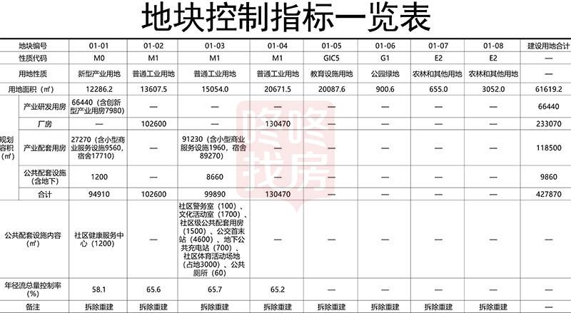 规划容积427870㎡,其中厂房233070㎡,产业研发用房66440㎡(含创新型产业用房7980㎡),产业配套用房118500㎡(含小型商业服务设施11520㎡,宿舍106980㎡);