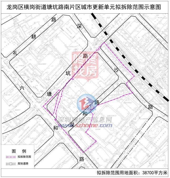 塘坑路南片区城市更新单元(计划延期)位于横岗,申报主体为深圳市六约股份合作公司,拟拆除范围用地面积38700平方米。