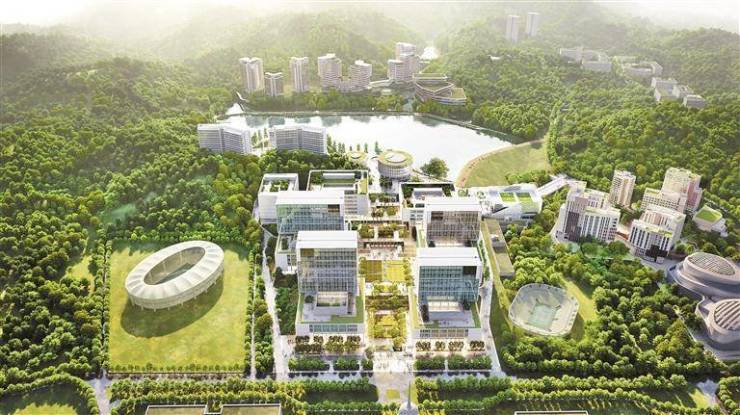 项目位于龙岗区国际大学园内,总用地面积约23.5万平方米,建筑面积55万平方米,包括教学大楼、实验教学楼、科研大楼、图书馆、行政楼以及教师公寓、学生书院、室内体育馆等16栋新建建筑。