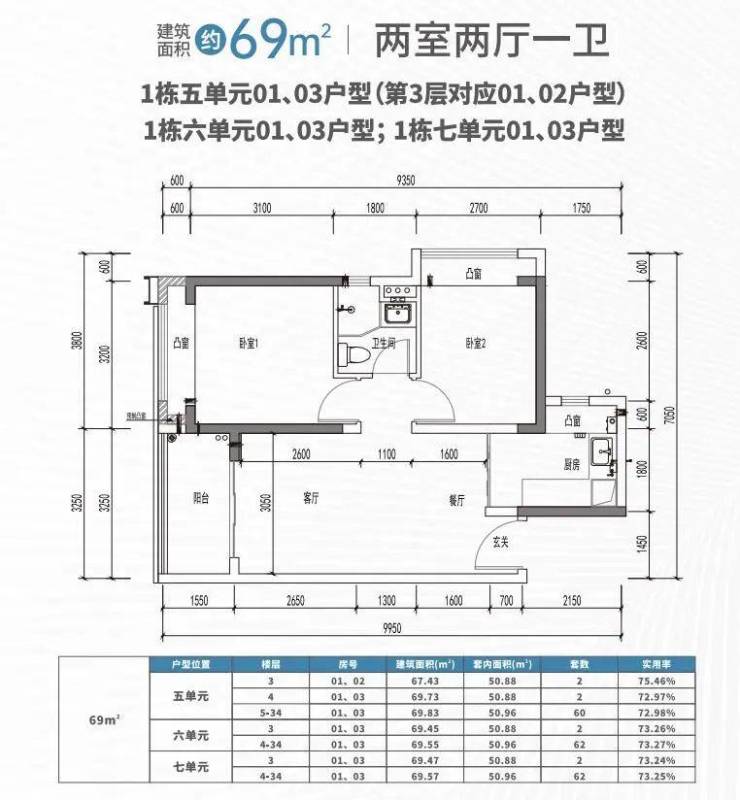 📌配售价格。直观的价格非常明显,两个项目之间相差近3050元/㎡。以69㎡的2房为例,悦章凤凰里的产品总价便宜近21万。大家可以结合自己的经济情况选择。