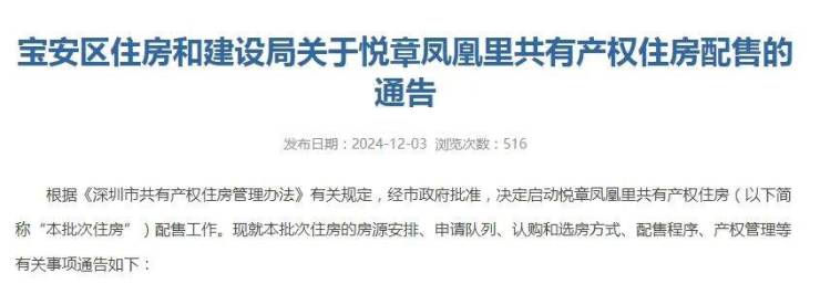 12月3日,同板块内同为共有产权住房的悦章凤凰里正式发布配售公告,12月4日正式申购。