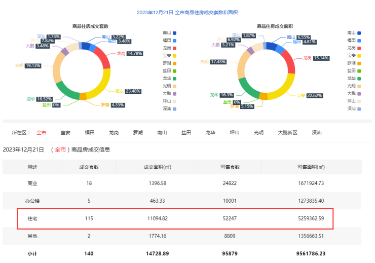 12月21日深圳新房住宅成交115套 二手房住宅成交147套