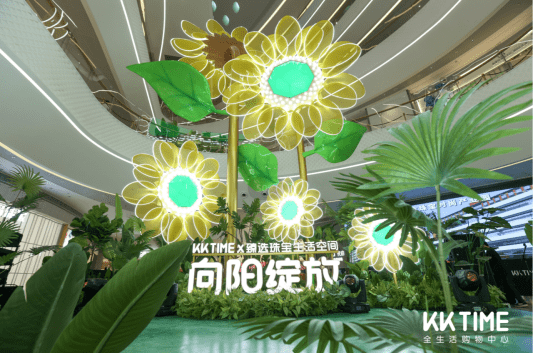 国际珠宝产业IP与自然生态的融合、商业与产业的影响力、艺术与创意的火花,迸发出KK TIME独特的创造力,如果用事物阐述,向日葵不失为最好的代名词,当它矗立时有最璀璨的样子,绽放时有最明亮的光芒。KK TIME打造“美好生活 向阳绽放”艺术开放展,高达12米的天际“向日葵”向阳绽放,在花园中、休闲区等各个区域昂扬生长,时刻传递缤纷多彩的美好生活;向日葵热爱生活的态度,向阳向上的美好品质,正是KK TIME一直传递的生活理念。同时,以生活中的小美好为凝聚点,与全民共创闪光生活摄影展,艺术主题双展以美好+生活为体验动线,观众可以亲身感受到创造者对于生活的别样见解。更有珠宝高定show、向日葵主题音乐LIVE、童话剧场梦幻巡游、K-POP造浪派对、COSPLAY元气创意赛五大无界创想秀,为消费者呈现兼具艺术氛围与生活气息的商业空间,为公众带来更多可持续的生活创想,开创性引领区域生活方式的升维。