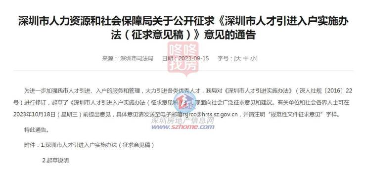 近日,深圳司法局官方发布深圳市人力资源和社会保障局关于公开征求《深圳市人才引进入户实施办法(征求意见稿)》意见的通告。