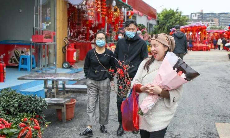 让喜气洋洋的节日氛围充满了整个花市