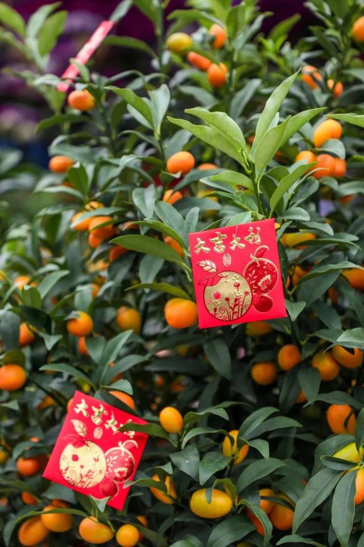 红红火火的春联福字、争奇斗艳的年花年桔