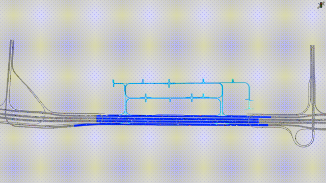 项目将路网交通量预测数据与fbx格式三维模型结合,仿真模拟交通运行场景,对方案进行优化比选,消除拥堵隐患。