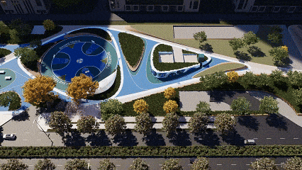 地面道路接口、公交站台与街道景观的精细模型,通过渲染高效生成逼真的可视化成果。