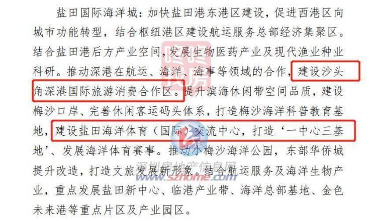 盐田国际海洋城:加快盐田港东港区建设,促进西港区向 城市功能转型,结合枢纽港区建设航运服务总部经济集聚区。