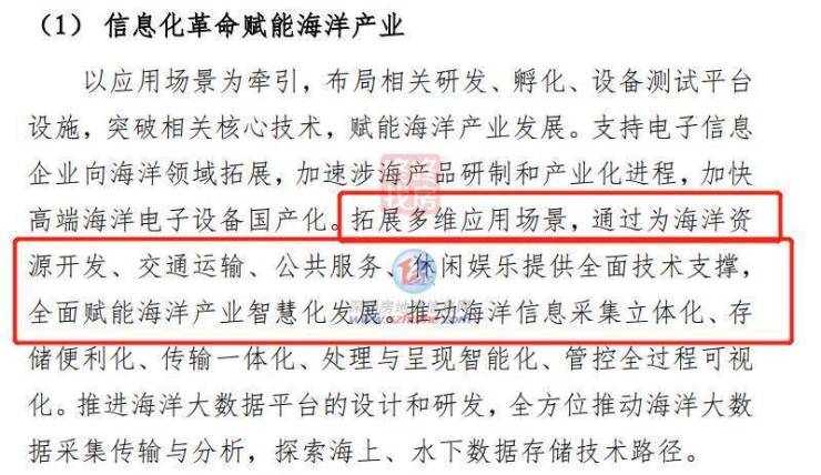 主要包括信息化革命赋能海洋产业;推动海洋高端装备智能化特色化发展;创新培育海洋生物医药产业。