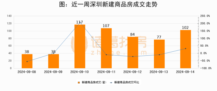 【深圳成交日报】09月14日新房成交102套、二手房149套;涨价房源15套