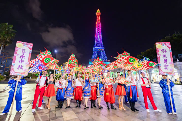 舞鱼灯是中国传统的大众娱乐活动,广东省第一批非物质文化遗产,用以祈求风调雨顺、五谷丰登。深圳世界之窗特别策划“游鱼月宴”巡游,以中华门为始,鱼灯队手握灵巧鱼灯,沿着景区主环道栩栩舞动,犹如鱼儿跃然水面,鱼灯里点燃的烛火摇曳闪烁,锣鼓喜乐喧天,游客可紧随巡游队伍,与斑斓鱼灯亲密互动,共享这份独特的文化体验。