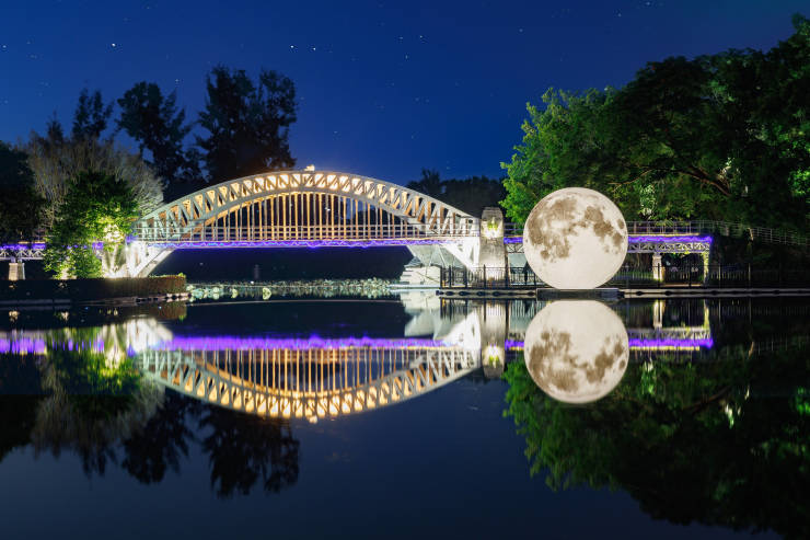 水上生明月,世界共此时。景区内大洋洲悉尼铁桥区、美洲大瀑布区及亚洲东南亚水乡区水面空降三座超大月亮,月亮夜灯与世界景观交相辉映,景区特推出“捕月书梦”活动,完成三处月亮气灯合影留念的游客,可获赠一枚祈福河灯,用以书写中秋祝愿,让美好愿望随水波流转,传递至远方。