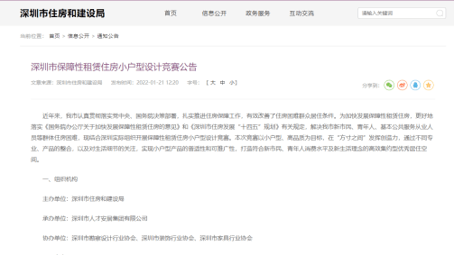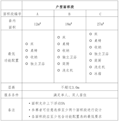 深圳市住房和建设局官网显示,此次竞赛要求设计的小户型保障性租赁住房必须配备套内12m²、18m²、27m²三种面积类型,并针对新市民、青年人与基本公共服务从业人员等群体居住生活模式和功能需求进行研究。