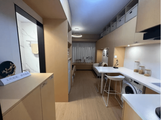 近日,网友曝出一组深圳小户型保障房样板间照片引发关注。照片显示,该保障房面积虽小,却包含床、桌椅、定制柜、独立卫浴、简厨、冰箱等家具家私,睡眠、起居、收纳功能均能满足,堪比平价版“全屋定制”。