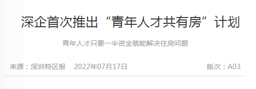 全国首次!深圳有企业推出‘青年人才共有房’计划,推出50套产业公寓,与人才共同拥有产权。