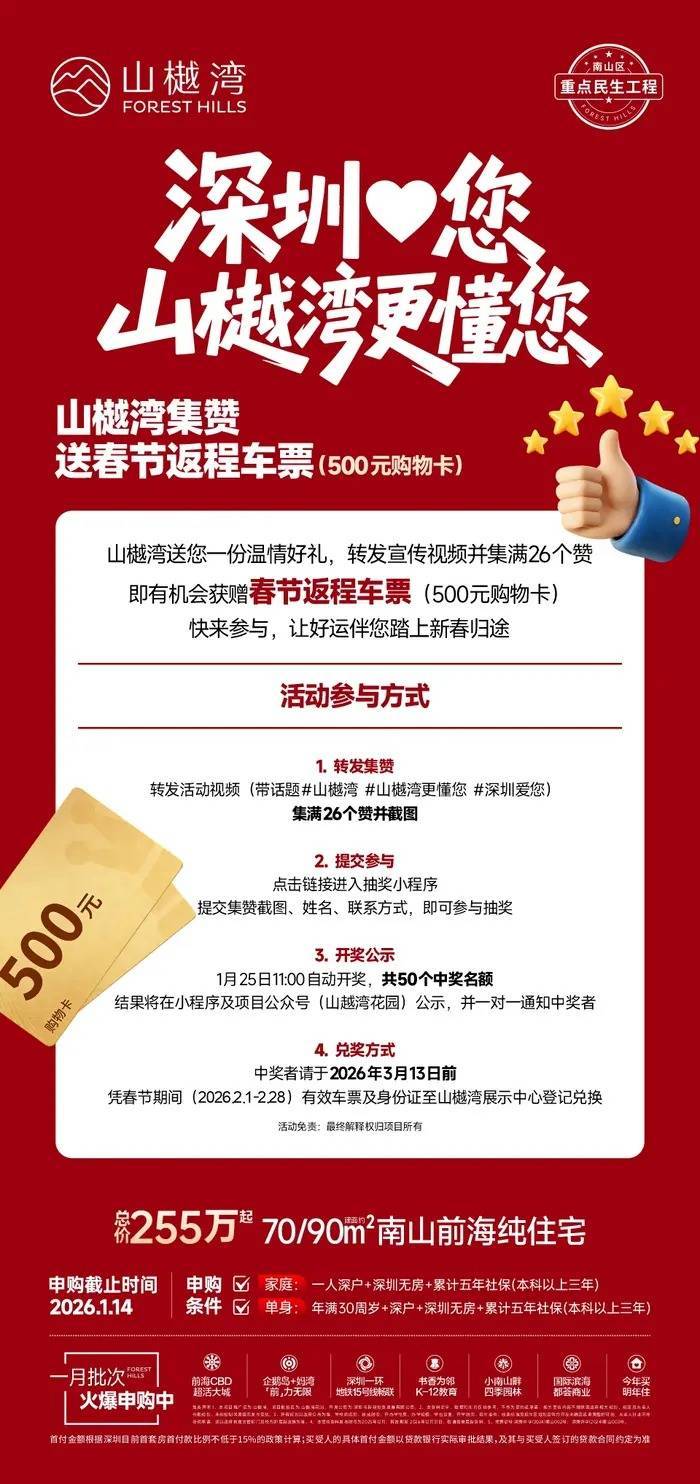 深圳️爱您,山樾湾懂您!山樾湾助力您春节返程车票活动