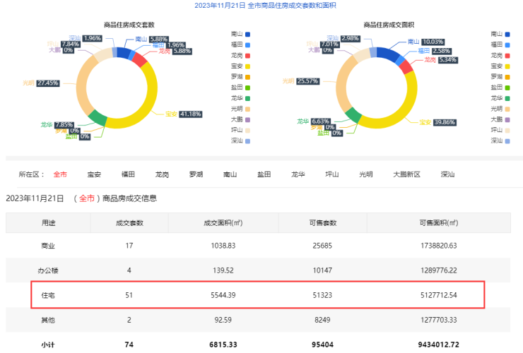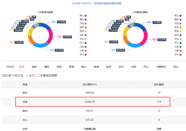 11月21日深圳新房住宅成交51套 二手房住宅成交114套