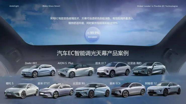 光弈科技是全球唯一实现电致变色大面积曲面产品量产的创新型科技企业,其EC智能玻璃已广泛应用于超20款量产车型,包括蔚来、极氪、奥迪、比亚迪、阿维塔等多个品牌。
