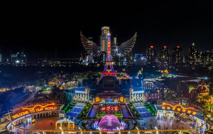 国庆假期,深圳世界之窗无人机、烟花连续绽放,点燃“夜游”高潮,献礼伟大祖国,为广大市民游客带来一场视觉与科技的双重盛宴。值此假期,世界之窗精心准备了国庆主题限定无人机编队表演,将有近千架无人机奉上精彩演出,共祝祖国生日快乐。景区经典大型烟花秀《烟花之舞》将在国庆继续闪耀深圳湾夜空,灯光璀璨,绚丽焰火,庆祝祖国的繁荣昌盛,赞美祖国的富饶强盛。