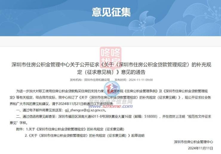 2024年11月11日,深圳公积金中心发布了《关于〈深圳市住房公积金贷款管理规定〉的补充规定》《关于我市住房公积金利息补贴有关事项的通知》的征求意见稿,拟提高深圳公积金贷款最高额度,加大对缴存职工的利息补贴力度,其中包括职工个人申请公积金贷款,最高额度由现行的50万元提高至60万元;家庭共同申请公积金贷款,最高额度由现行的90万元提高至110万元等。