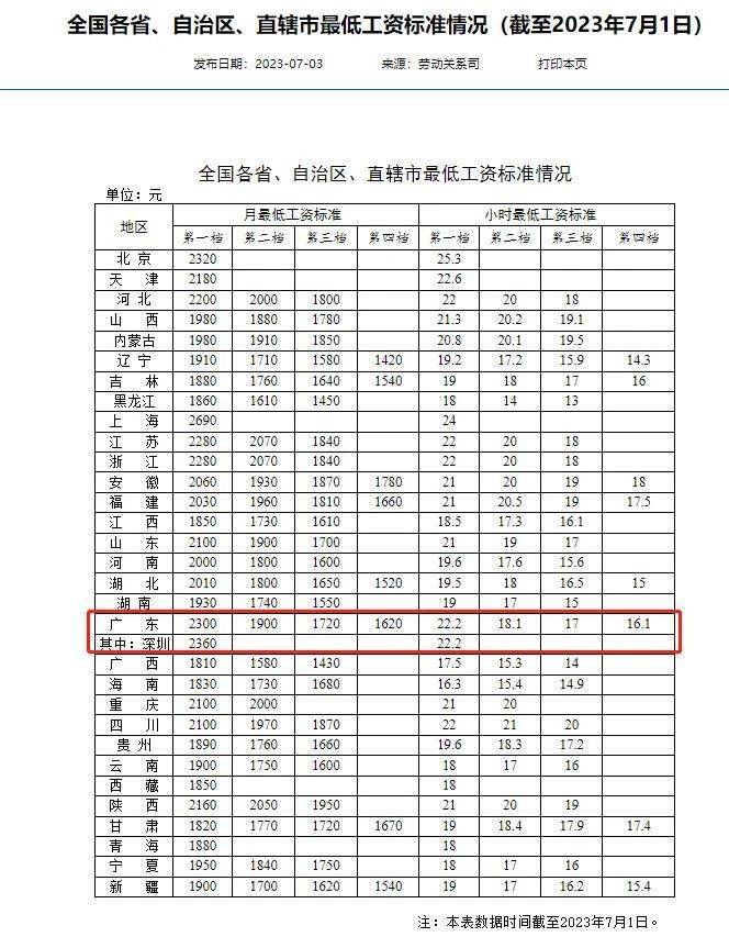 近日,人社部最新发布了全国各省、自治区、直辖市最低工资标准情况(截至2023年7月1日),上海以2690元仍居榜首。其中,广东省最低工资标准为2300元,深圳的最低工资标准是2360元。