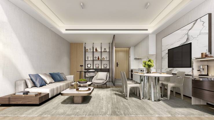而大师设计天团之一的CCD郑中设计副总裁赵总则表示:“打造有质感、有呼吸韵律的空间,在‘城市绿洲’中拥抱诗意生活”,项目正是始终贯穿这一优质设计理念,循迹英龙·尊滙项目得天独厚的生态优势,与莲花山相互对望,轻松打造出极其有质感的空间,实现居所与自然共鸣。