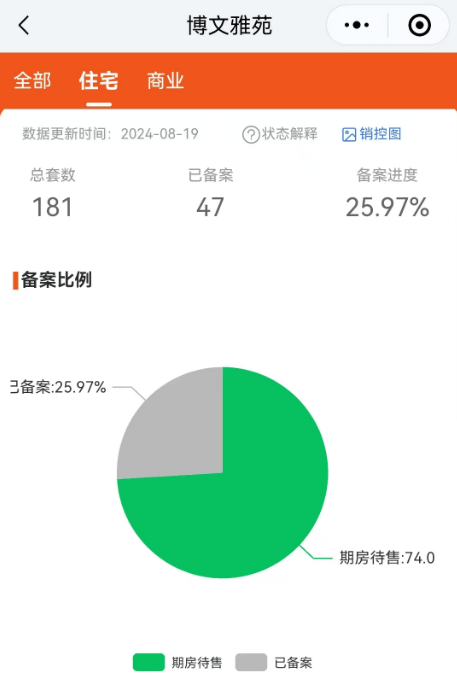 不过,振业博文雅苑1栋房源,去化约26%。(截至2024年8月19日)