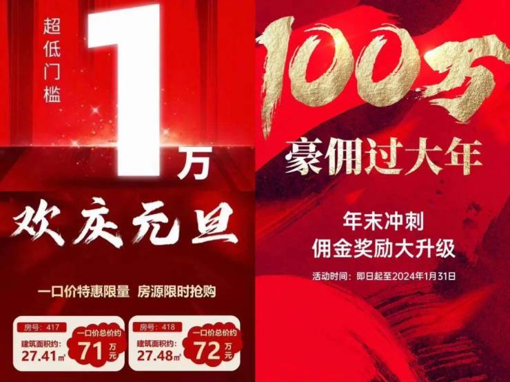 从早期宣传架势上看,各大中介和开发商都对2024年元旦寄予了较高希望,华南地区有开发商甚至给出了100万元的超级豪佣,还有中介段子手张罗购房者“该请假请假,该旷工旷工”。