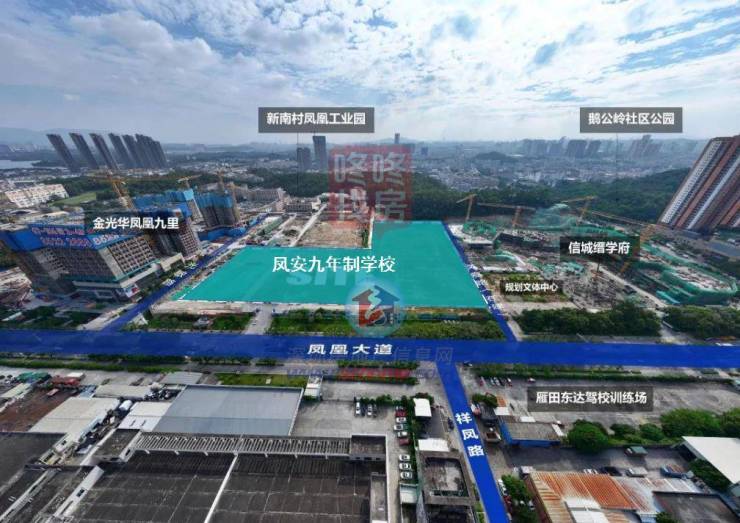 金光华凤凰九里、缙学府项目中间一个地块,将新建凤安九年一贯制学校,总用地面积3.8万㎡,总建筑面积约7.9万㎡。是一所81班(小学54班、初中27班)3780个学位九年一贯制中小学。