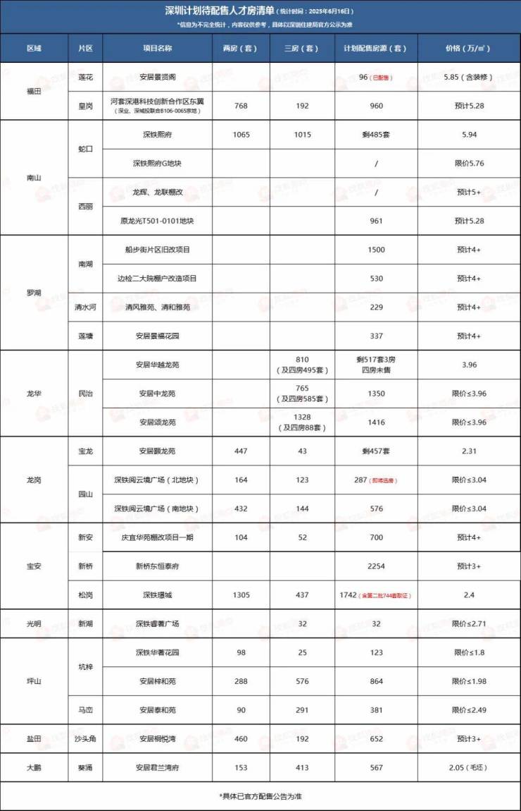 深圳人才房虽然是绝版产品,在前期规划项目还有“余粮”,据不完全统计,含安居景贤阁在内,还有25个项目约1.5万+套房源将供应(含前期配售过剩余房源较多的项目)。