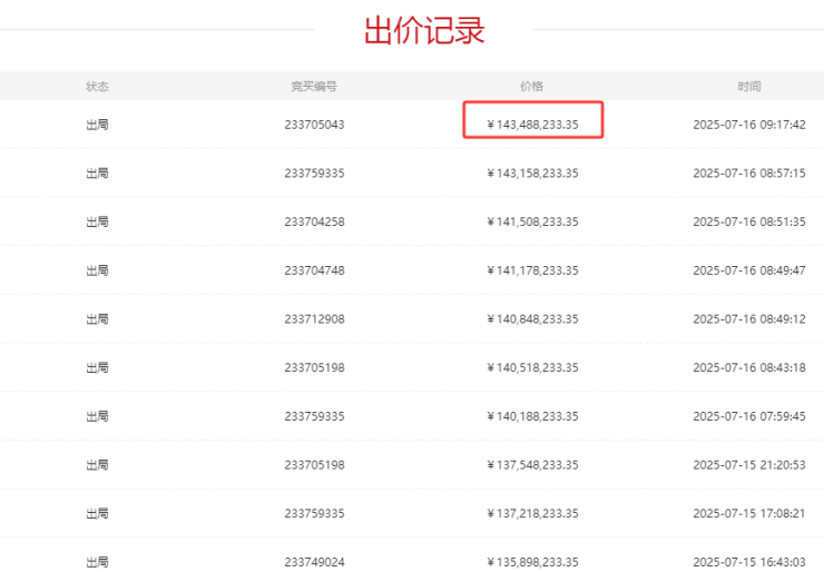 该标的物吸引19人报名,38853人围观,最终历时2天、出价296轮后成交,成交金额约1.49亿元,溢价率超210%。