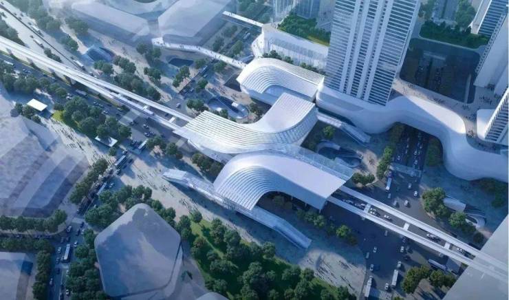 未来,市民在枢纽换乘的时候可以从各个角度看到地铁进出车站的景象。