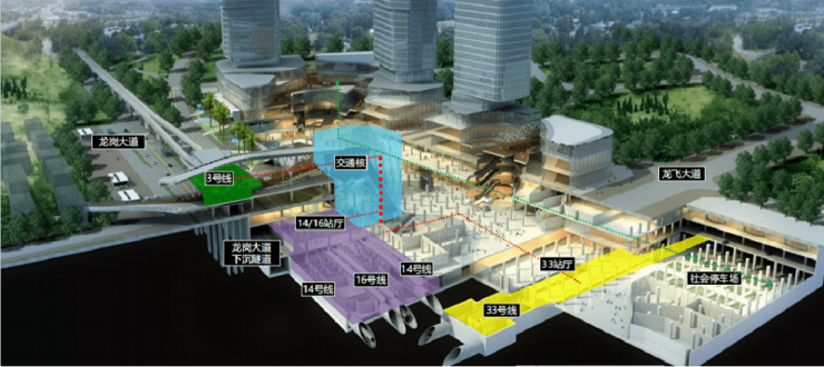 届时将与地铁3号、14号、16号和深大城际线等多条轨道交通换乘,串联起福田、罗湖、龙岗、坪山等片区,成为深圳东部重点片区与中部交汇的重要节点。