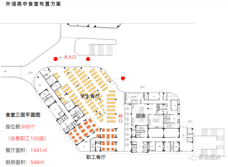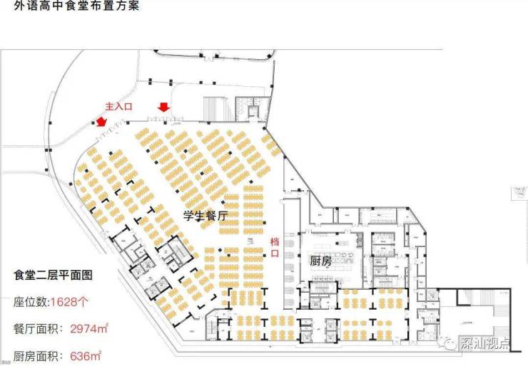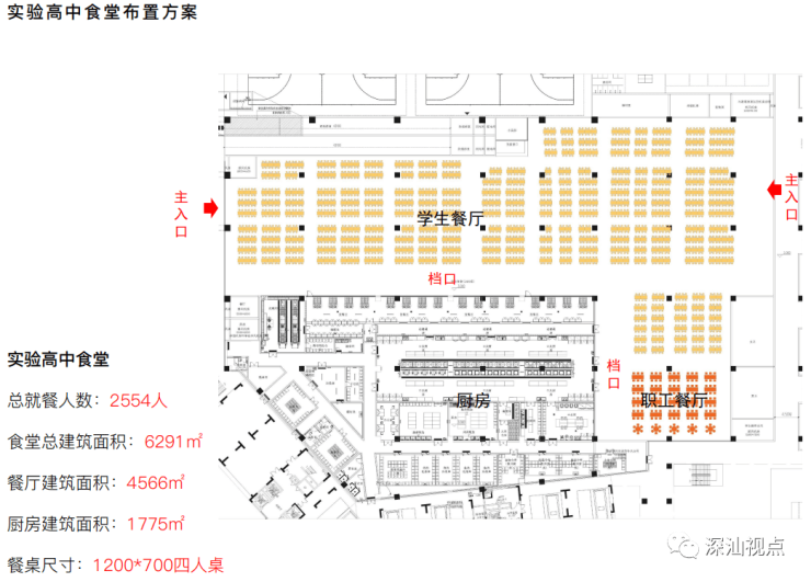 同时,在架空层大巴接驳区开通食堂通道,设置对家长开放的就餐区。