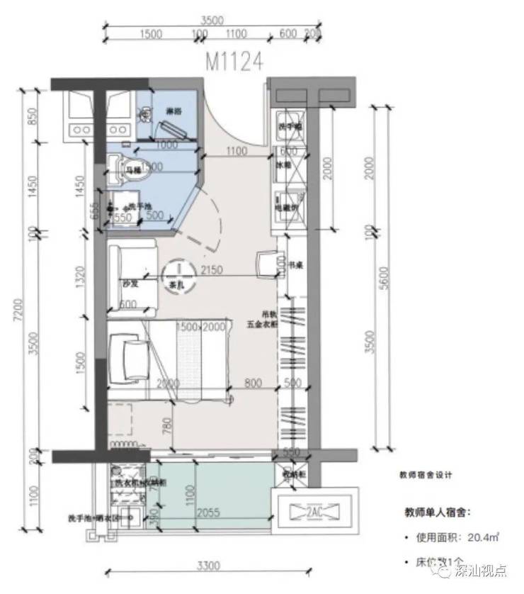 教师宿舍楼3栋,包括540套使用面积21平米的单人间,108套使用面积42平米的双人间。
