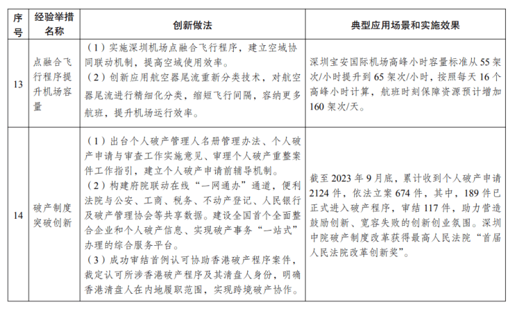 党中央部署开展深圳综合改革试点以来,各项改革举措陆续落地,推出了一批创新举措并取得明显成效,落地了一批地方标准乃至国际认证标准,形成了一批被国家法律、司法解释、部门行政规章及规范性文件吸收借鉴的制度性成果。贯彻落实党中央关于加大改革典型经验交流推广的部署要求,充分发挥综合改革试点的突破和带动作用,在2022年推广借鉴深圳综合改革试点首批授权事项典型经验和创新举措基础上,国家发展改革委、科技部、司法部、自然资源部、中国人民银行、中国证监会、国家知识产权局等有关部门对深圳综合改革试点最新进展及成效作了深入梳理研究,形成了新一批创新举措及典型经验,供各地根据实际情况参考借鉴。