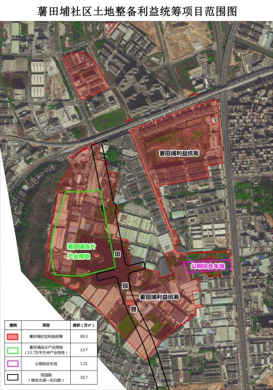 薯田埔社区土地整备利益统筹项目为区政府重点督办项目,用地面积约70万平方米,其中13.7万平方米用地清理已列入2021年光明区十大攻坚克难任务。