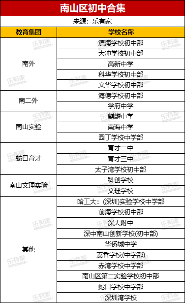 热点中学为:南山外语学校(集团)高新中学、南山第二外国语学校集团海德学校初中部、南山实验教育集团麒麟中学、深圳南山外国语学校(集团)文华学校初中部、蛇口育才教育集团育才二中、蛇口育才教育集团育才三中、前海学校初中部、南山区第二外国语学校(集团)学府中学、南山实验教育集团南海中学、南山外国语学校(集团)大冲学校初中部