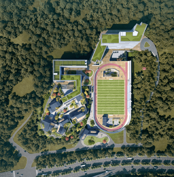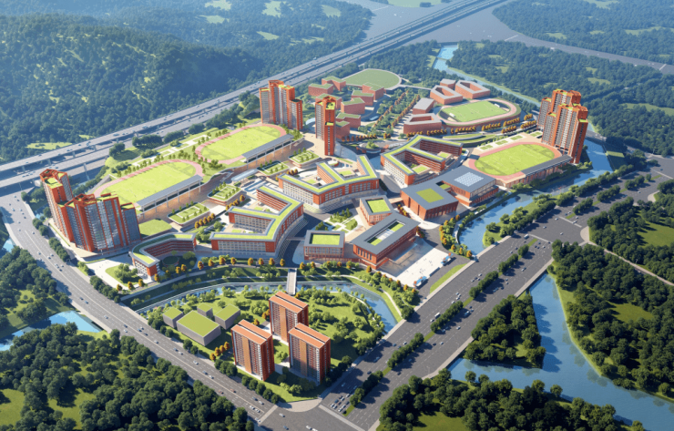 深圳中学高中园“一园三校”,坐落于深汕中心区,总建筑面积39.709万平方米,科技高中、数理高中、实验高中3所寄宿制高级中学,办学规模为198个班/9900学位,全面涵盖教学、办公、体育、艺术、食宿、公交、停车场等功能。同时,采用“共享+独立教学组团”功能组织模式,3所高中基本教学、生活、运动功能区各自独立又高效连接,公共教学区与特色教学区位于高中园中央,形成5分钟“便捷”教学生活圈。预计深中高中园另外两所高中将于2024年开始招生。